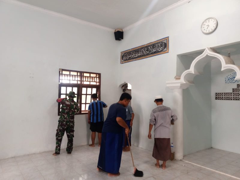 Babinsa bersama warga tampak kompak membersihkan area dalam dan luar musholla. “Momentum Ramadhan ini kami manfaatkan untuk mempererat kebersamaan dengan warga sekaligus menjaga kebersihan tempat ibadah agar jamaah merasa nyaman,” ujarnya.