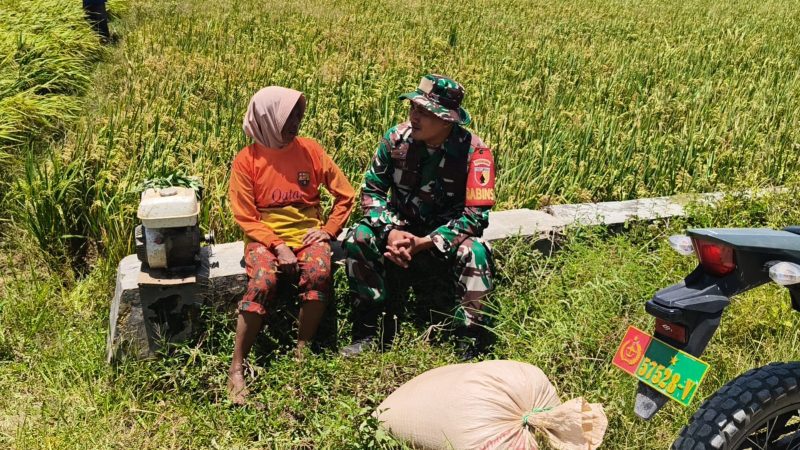 Loat.co.id, Pamekasan – Babinsa Koramil 0826-03/Proppo, Sertu Nurrahman melaksanakan kegiatan komunikasi sosial (Komsos) dengan warga di Dusun Demabuh Laok, Desa Jambringin, Kecamatan Proppo, Kabupaten Pamekasan. Komsos tersebut dilakukan bersama Munirah yang sedang beristirahat di pinggir sawah setelah selesai melaksanakan panen padi.